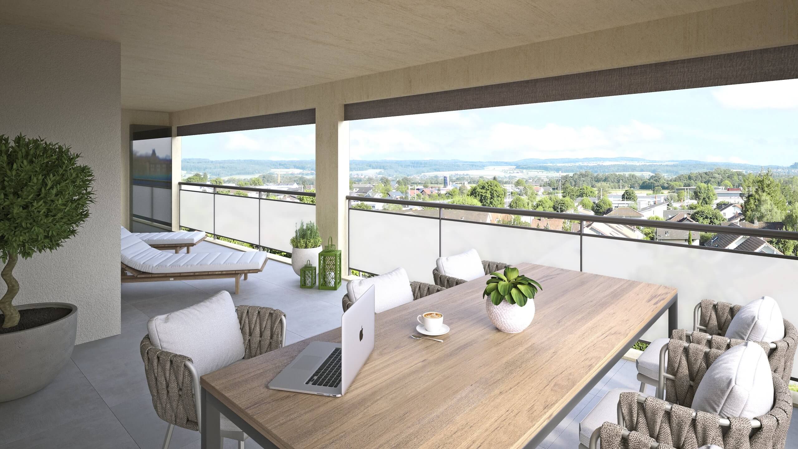 Die zwei Attikawohnungen verfügen über 3.5 attraktive Zimmer, die sich auf eine Nettowohnfläche von 143.4 m2 verteilen. Das Highlight dieser Wohnungen ist die riesige Terrasse mit einem atemberaubenden Ausblick Richtung Alpen.